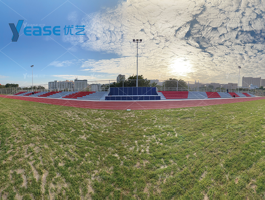 坚固耐用的钢结构看台系统,满足户外场馆长期使用与高承载要求。