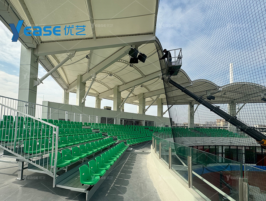 坚固耐用的钢结构看台系统,满足户外场馆长期使用与高承载要求。