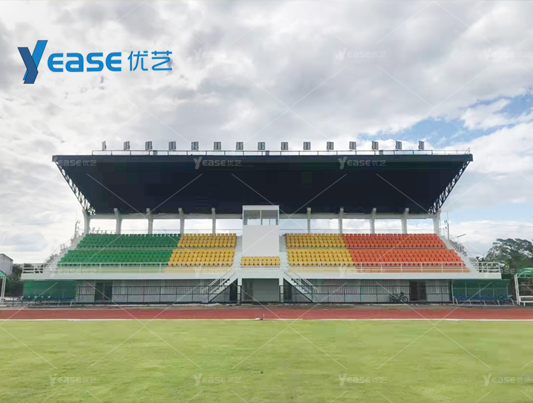 坚固耐用的钢结构看台系统,满足户外场馆长期使用与高承载要求。