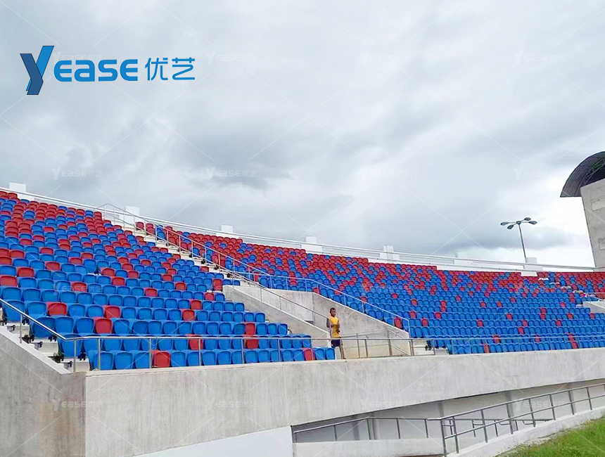 坚固耐用的钢结构看台系统,满足户外场馆长期使用与高承载要求。