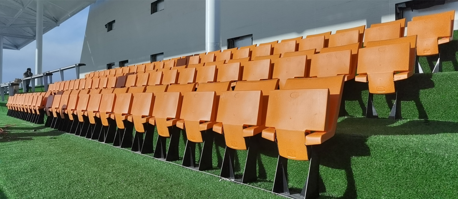 说明:座椅可实现立装、侧装两种安装方式以满足不同场地的要求,翻折式座椅能为场地提供更充足的入席空间,场地适应性更佳,座椅采用高密度聚乙烯(HDPE)为原料,中空吹塑一体成型,该材料具有良好的防水性与抗冲击性,机械强度和化学稳定性好,具有良好的耐候性(耐热性和耐寒性),座椅颜色选用专业着色母粒,可保证颜色持久靓丽,座椅颜色可根据客户要求定制,可针对不同场地特性设计个性化配色方案。